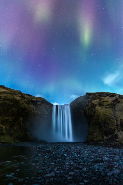 Skógafoss stands at over 60 metres tall and 25 metres wide, unleashing tens of thousands of litres of glacier water per second. Experiencing this epic location at night, with no crowds, and the aurora dancing overhead was a dream. In Norse mythology, the Bifrost is the rainbow bridge that connects the mortal world (Midgard) to that of the Gods (Asgard). Here, it felt like I was between the two. That if I could see just a little farther, then I might find the Gods themselves.