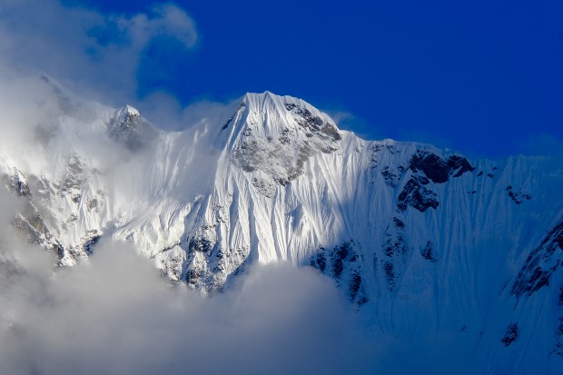 Captured from Jomsom in Mustang, Nepal, this image marks my final glimpse of Nilgiri North (7,061m) as daylight faded. I was mesmerized by the mountain’s sharp, sculptural features bathed in pure, solid blue while wisps of atmospheric cloud drifted gracefully across the peak. A fleeting moment of stillness, light, and form