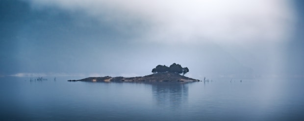 Captured in the wild west coast of Tasmania, a cold and gloomy morning and lower water lines revealed a string small islands.