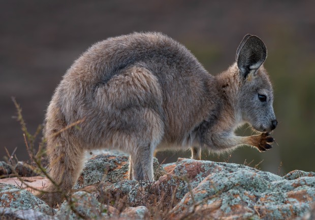 Early Morning in the Flinders Ranges in South Australia. This young Euro was having chewing a small branch. It did not look overly tasty.