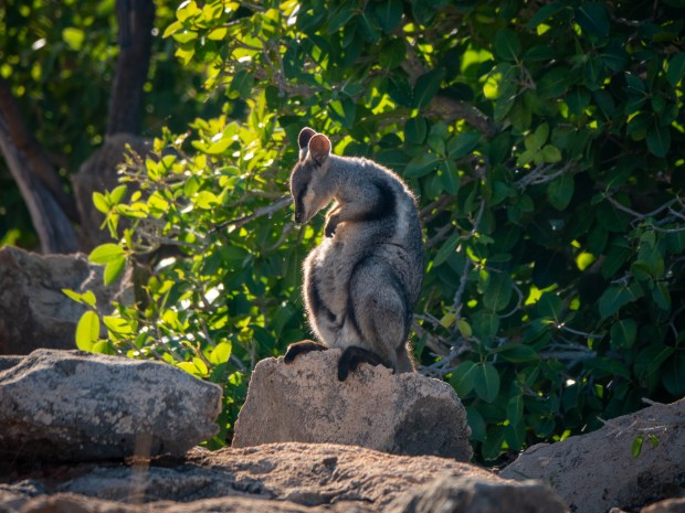 A rock wallaby meditating in the sun on a glorious morning at Cape Range National Park in Western Australia.