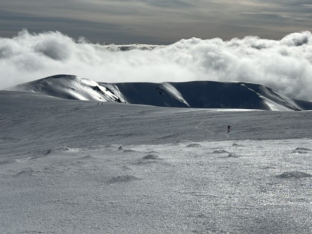 Cross country skiing from Guthega Dam to Twynam, in the NSW Snowy Mountains we had pushed on through a storm, hopeful it was clearing. The higher we skied the more the storm eased off, till even the flurries pouring over the top of Twynam disappeared. The was air crispy and snow crackled along the ridge line. And then at the top it was as still as I have ever experienced. Not even our hearts raced. Just pristine clean light, a freshness and contentment.