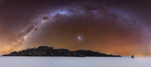 This is Milky Way rising over Cactus Island, or Isla Incahuasi in Uyuni, Bolivia. We were the only 4 living creatures on the salt flat. The tranquility was out of this world and temperature was down to 0 degree Celcius. This panorama image is made up of 19 images stitched together to create the full arch of the Milky Way