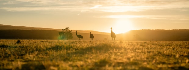The Weddin Mountains nature reserve rises up in the middle of flat grassland in inland NSW. Once the hideout and staging grounds for bushrangers who took advantage of the views to look for stagecoaches transporting gold. Still providing a refuge but now for native plants and animals. The surrounding farmlands and groves of native cypress provide the perfect environment for emus. I visit this region often and I am always excited by the families of emus moving together through the sunrise.