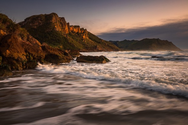 A grand landscape taken just before the sun graces the land with light! Kairakau Beach - New Zealand.